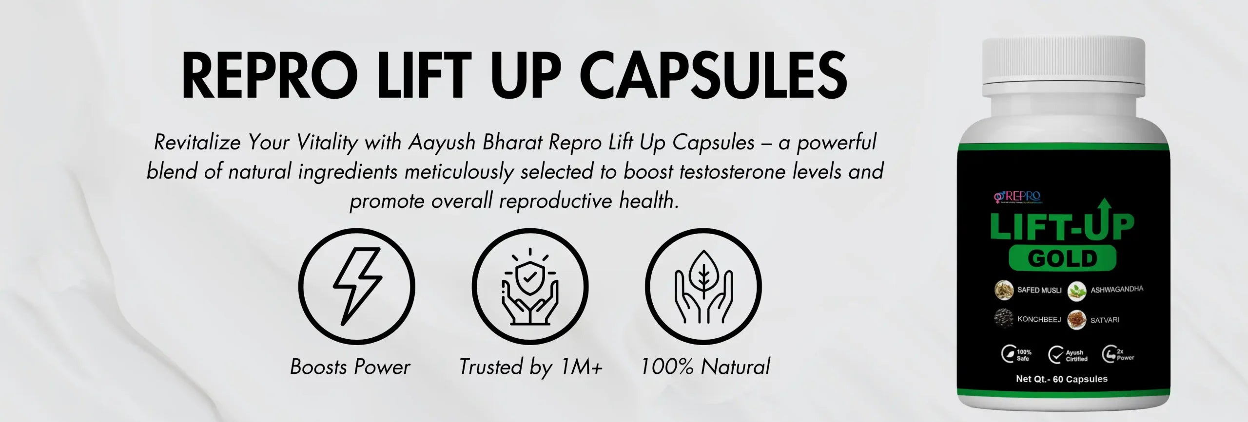 Revitalize Your Vitality with Aayush Bharat Repro Lift Up Capsules – a powerful blend of natural ingredients meticulously selected to boost testosterone levels and promote overall reproductive health.