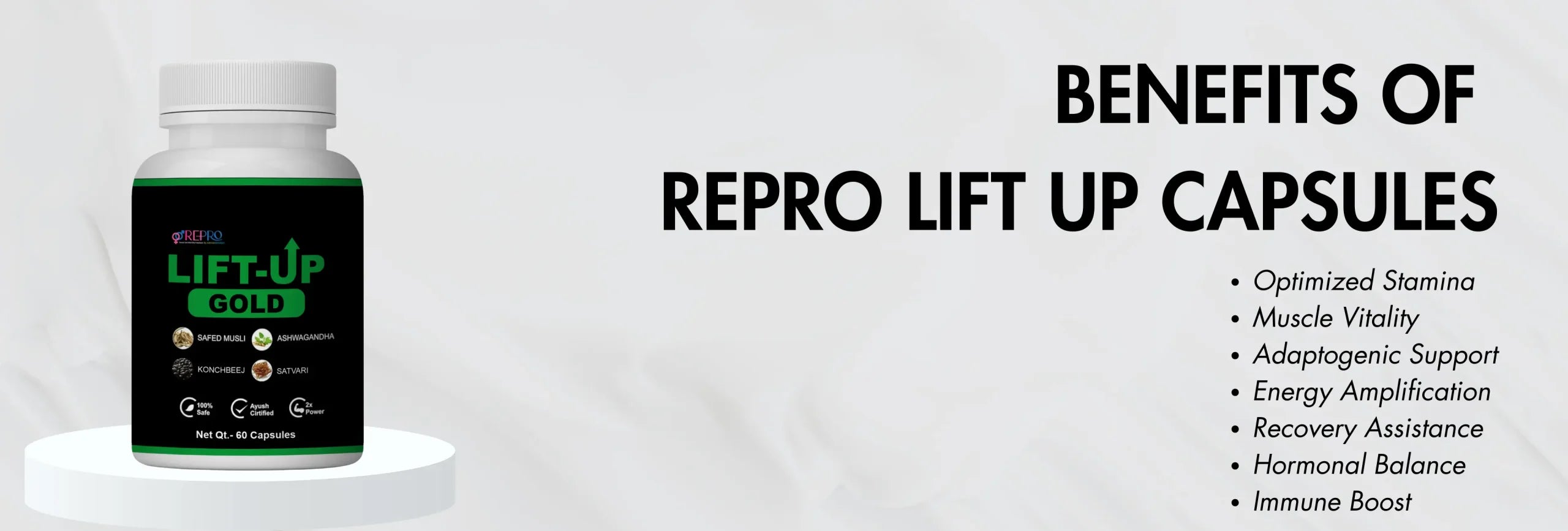 Power Up Your Performance with AayushBharat Repro Lift Up Capsules – an elite blend of natural ingredients meticulously chosen to elevate testosterone levels and support reproductive health, making it an ideal supplement for fitness enthusiasts and gym professionals. Unlock a range of benefits tailored to enhance your workout experience: